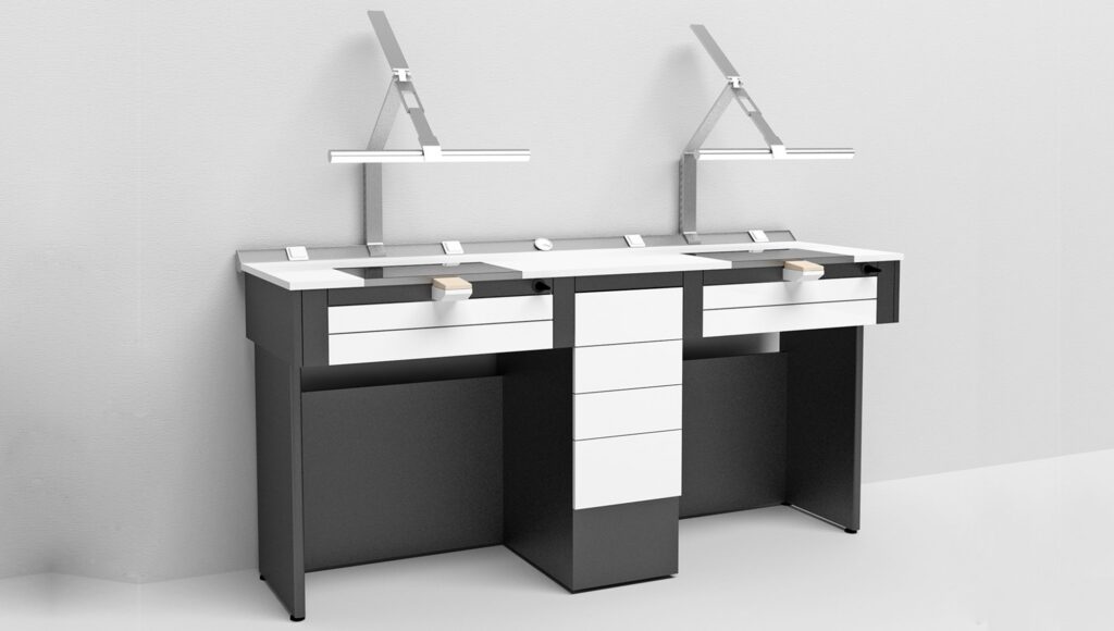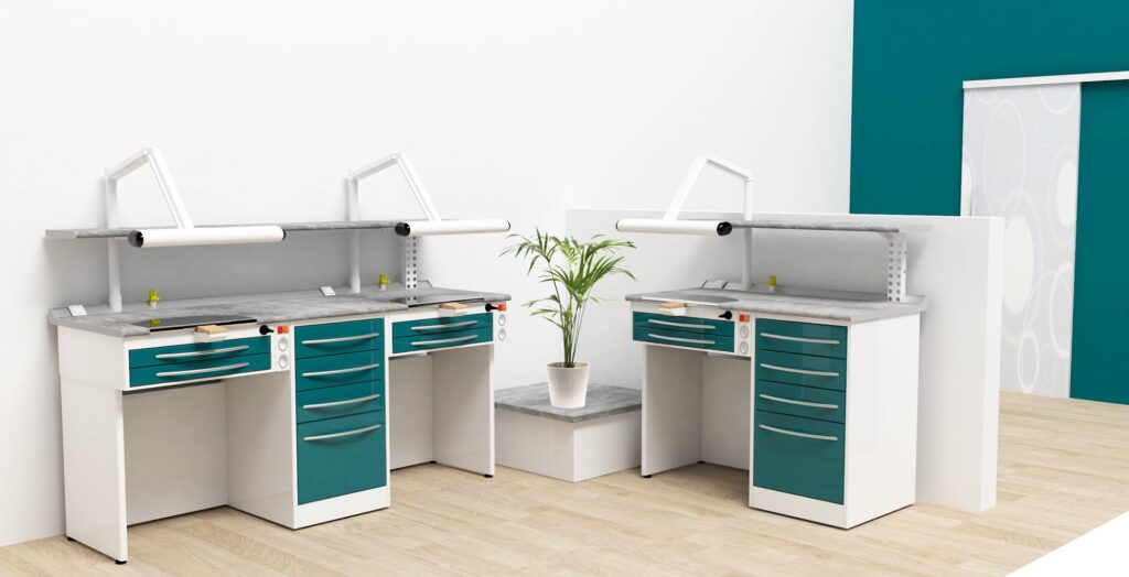Seit 30 Jahren sind wir ein weltweit anerkannter Spezialist für die Herstellung von ergonomischen und funktionalen Möbeln für Dentallabore.