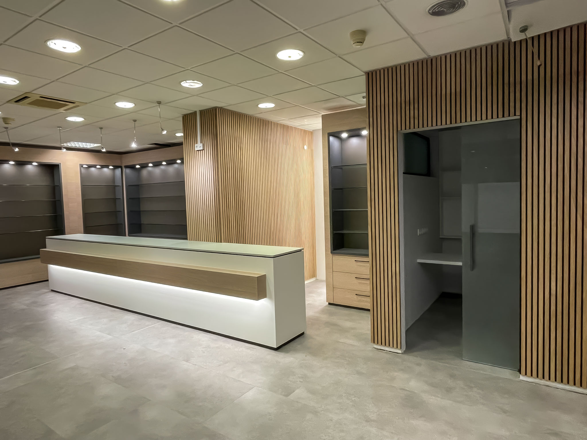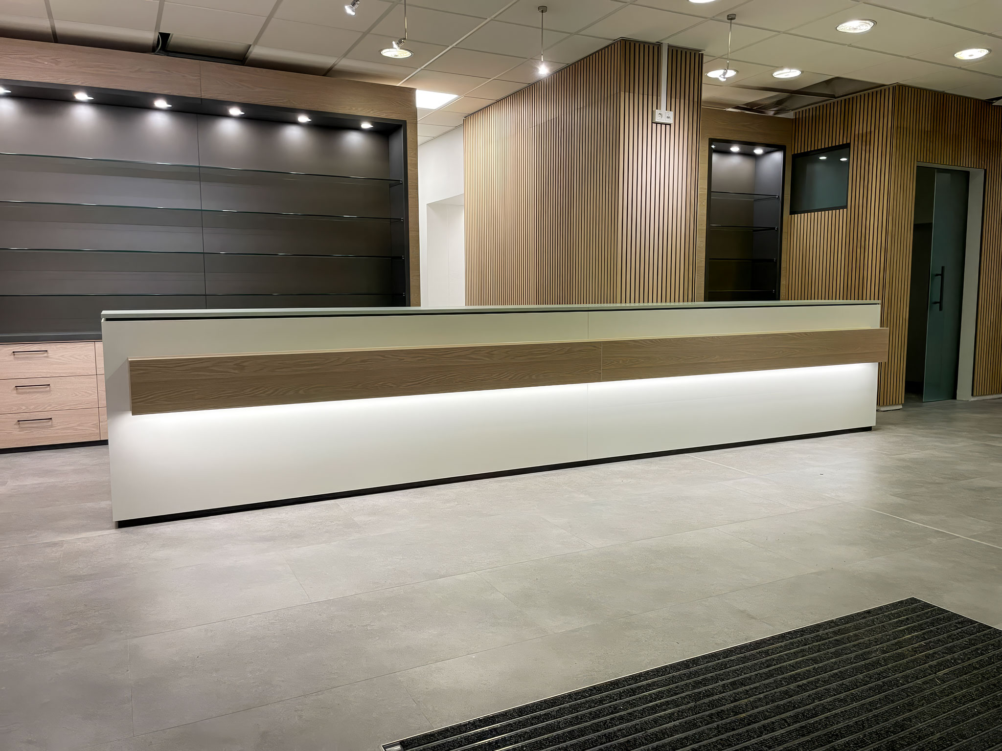 Optimale Funktionalität: Die Neugestaltung zielt darauf ab, Funktionalität und Ästhetik perfekt zu vereinen. Durch den Einsatz hochwertiger Materialien und raffinierter Lichtsituationen werden nicht nur die Produkte optimal präsentiert, sondern auch eine angenehme und professionelle Umgebung für Kunden und Mitarbeiter geschaffen.