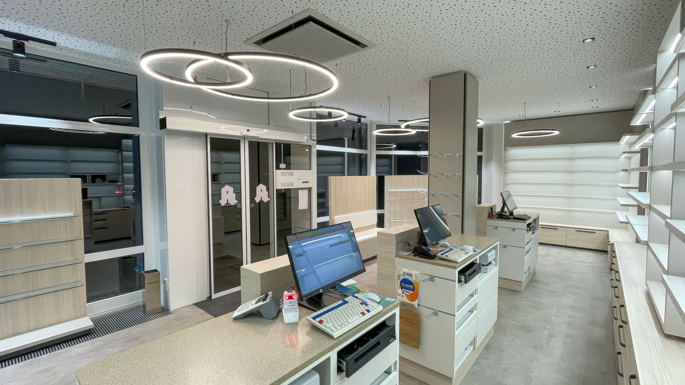 Modernität: NOVA Design hat die Räumlichkeiten hochwertig modernisiert, ohne dabei die Vertrauenswürdigkeit einer traditionellen Apotheke zu verlieren. Das Ergebnis ist ein einladendes, zeitgemäßes Umfeld, das den hohen Qualitätsanspruch der Linden Apotheke widerspiegelt.