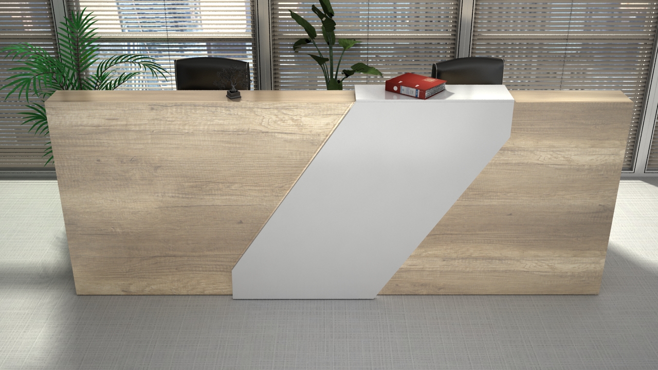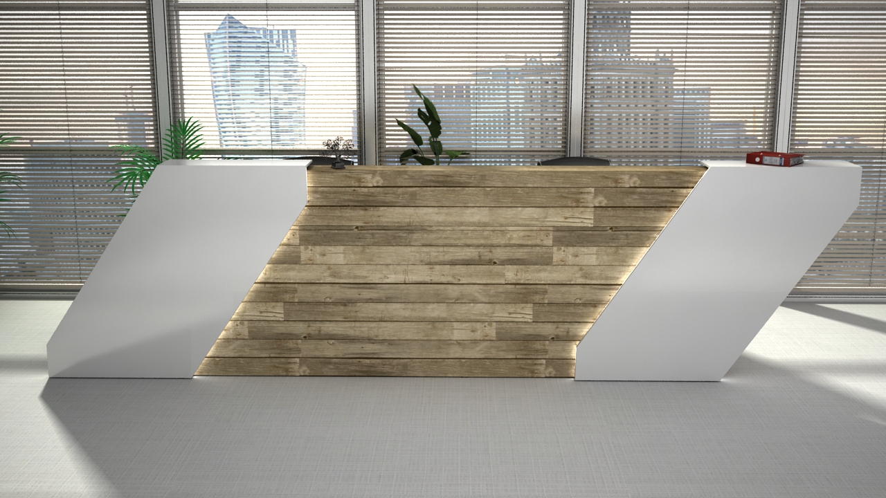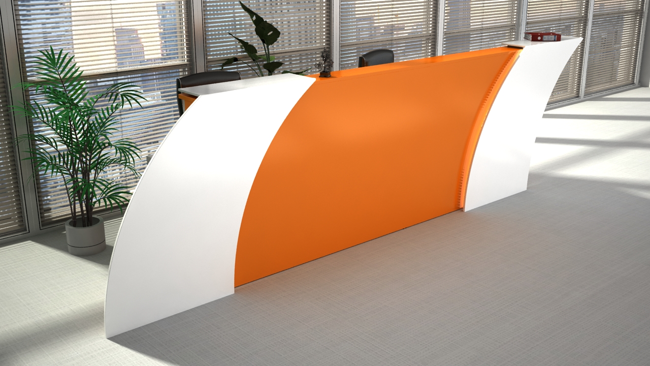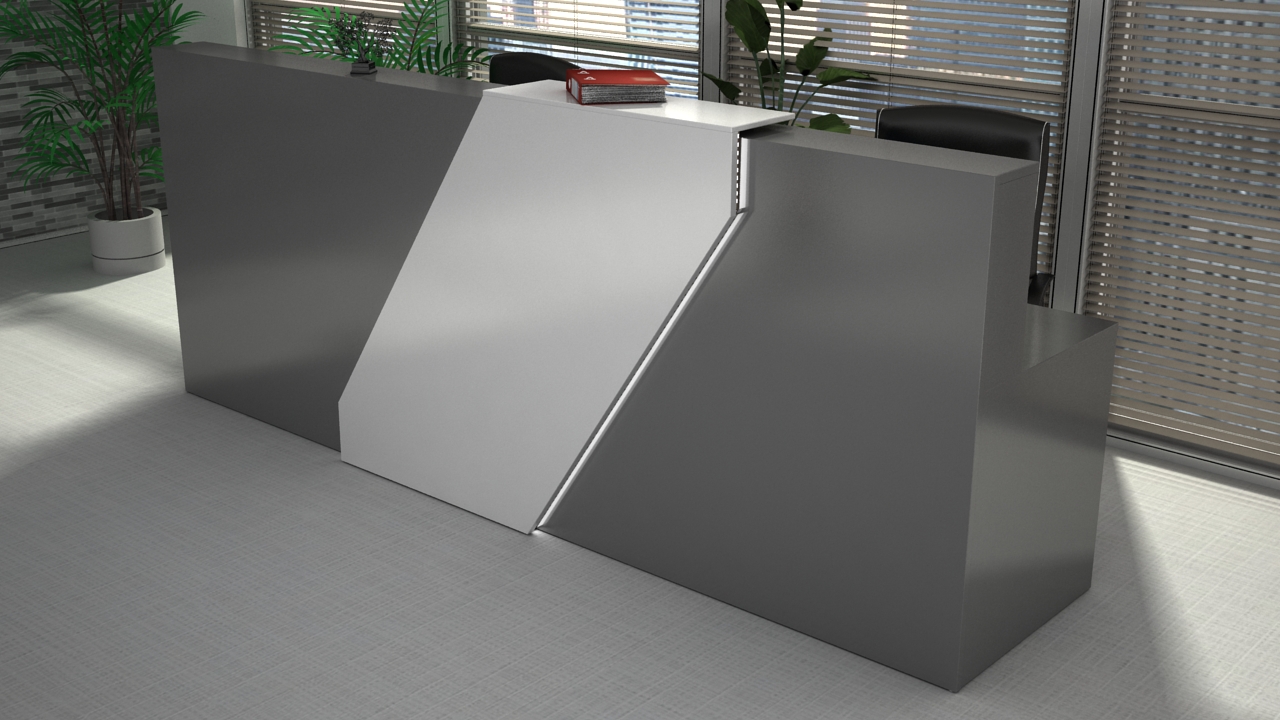 Im Rahmen von PRESTIGE kann der Schreibtisch aus einer glänzenden Platte bestehen und mit einem hinterleuchteten Logo oder Schriftzug hinter Glas versehen werden.