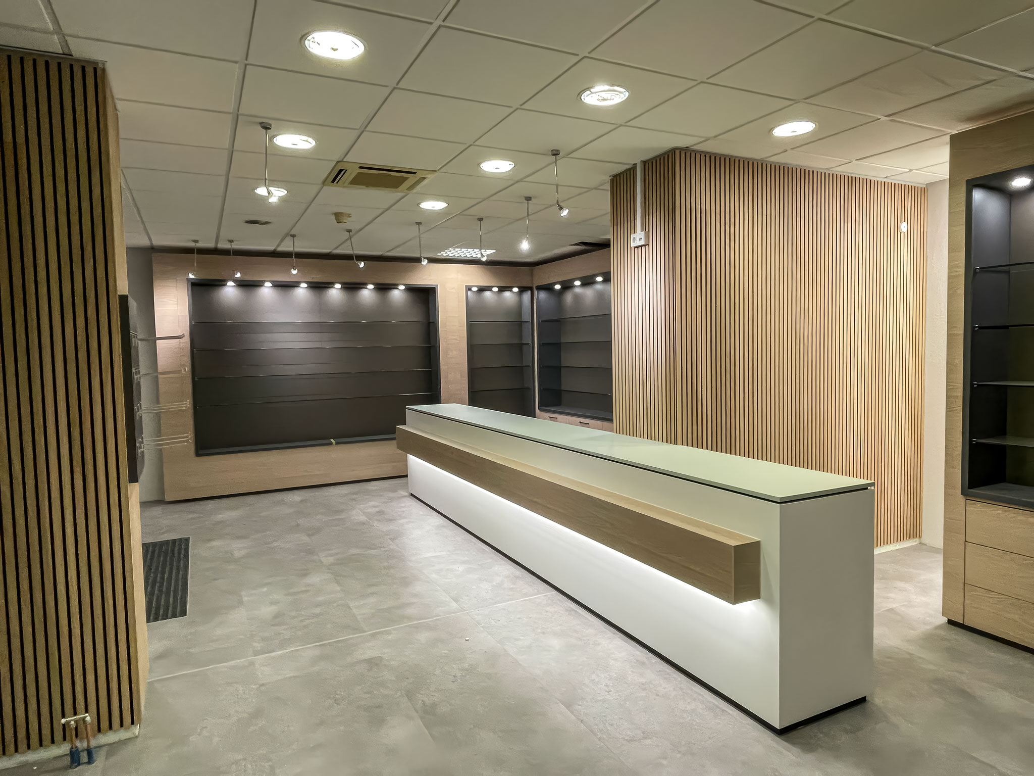Optimale Funktionalität: Die Neugestaltung zielt darauf ab, Funktionalität und Ästhetik perfekt zu vereinen. Durch den Einsatz hochwertiger Materialien und raffinierter Lichtsituationen werden nicht nur die Produkte optimal präsentiert, sondern auch eine angenehme und professionelle Umgebung für Kunden und Mitarbeiter geschaffen.
