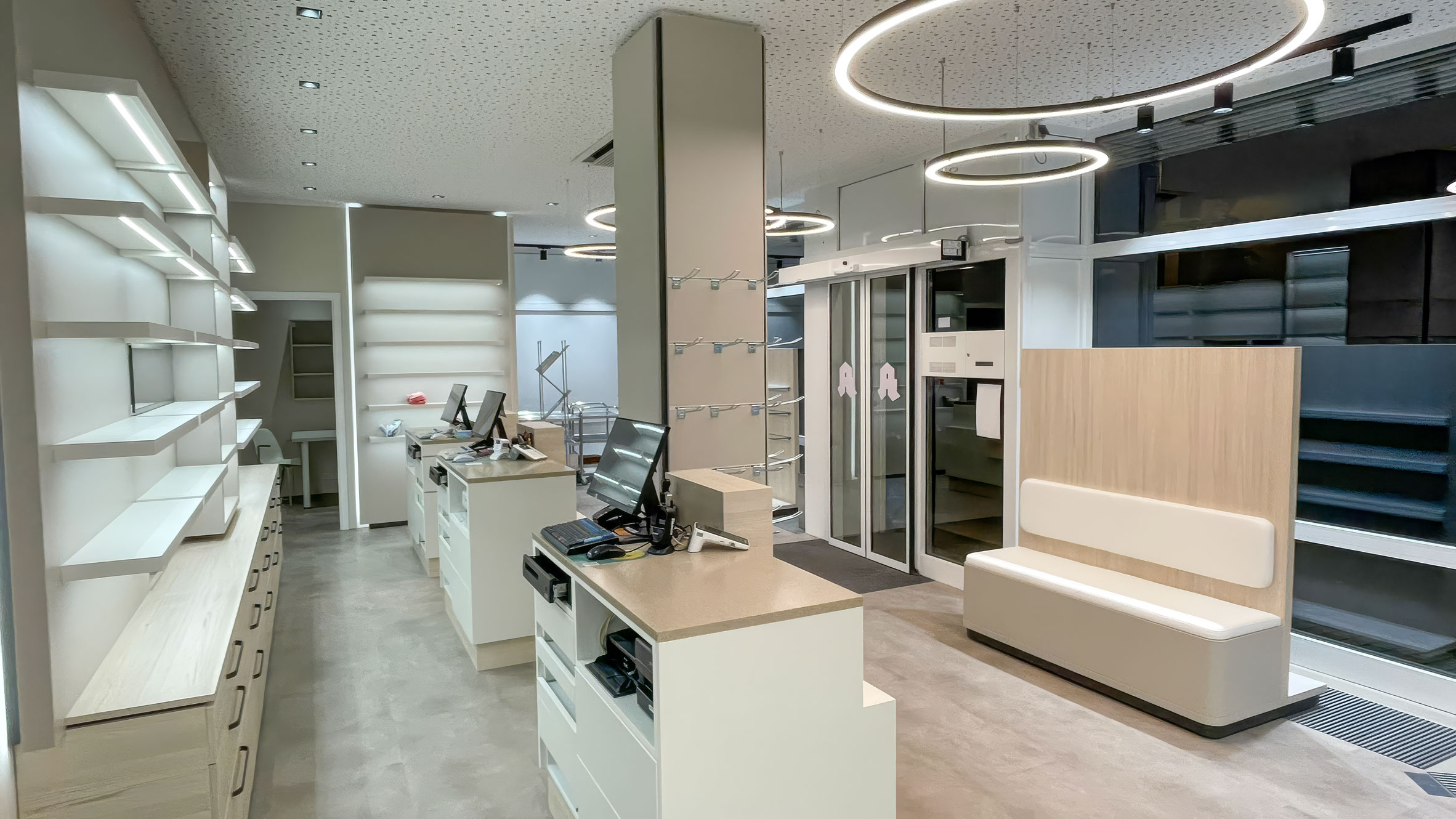 Modernität: NOVA Design hat die Räumlichkeiten hochwertig modernisiert, ohne dabei die Vertrauenswürdigkeit einer traditionellen Apotheke zu verlieren. Das Ergebnis ist ein einladendes, zeitgemäßes Umfeld, das den hohen Qualitätsanspruch der Linden Apotheke widerspiegelt.